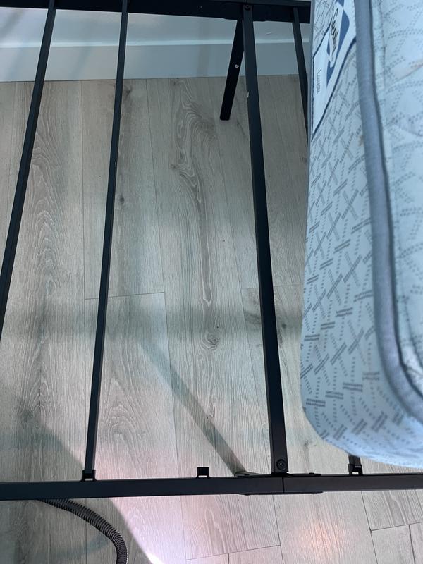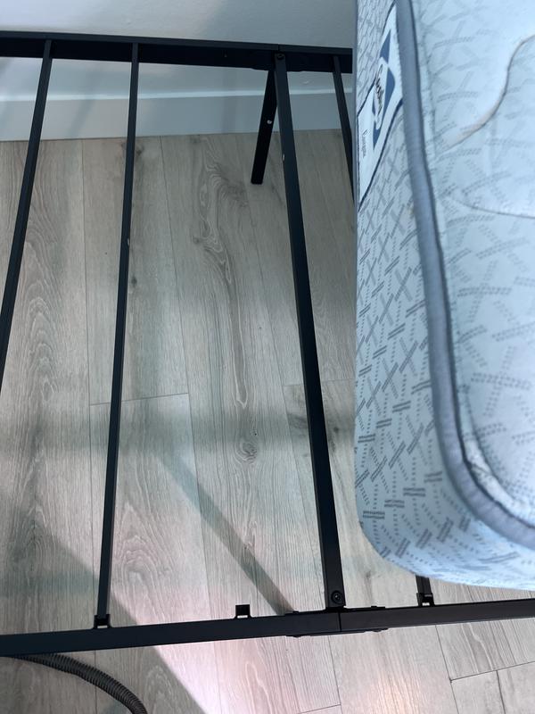 Maximize your space with our bed frame featuring 12.2 inches of storage underneath, perfect for keeping your personal belongings organized and out of sight. Designed with a modern and simple aesthetic, this frame eliminates the need for a box spring, securely holding your mattress in place without it sliding. Supported by a heavy-duty metal frame and 13 sturdy steel slats, this bed frame offers exceptional load-bearing capacity for a restful night's sleep. The center rail is lined with EVA foam to minimize noise, ensuring a quiet sleeping environment. Assembly is straightforward, as the slats easily click into place without requiring much time or effort. Additionally, protective support legs with smooth plugs are designed to prevent floor scratches, maximizing floor protection while providing sturdy support. Upgrade your bedroom with this functional and stylish under-bed storage frame.