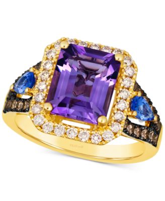 Multi-Gemstone (3 ct. t.w.) & Diamond (3/4 ct. t.w.) Halo Statement Ring in 14k Gold