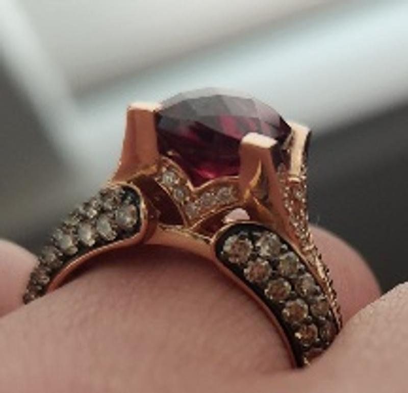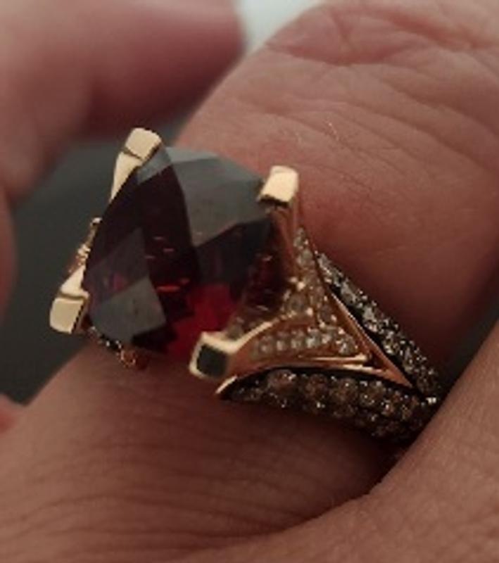 The Le Vian Raspberry Garnet Ring is nice but it has No Sparkle! Not for me! I will be Returning the Ring. No Sparkle! Rose Gold.
