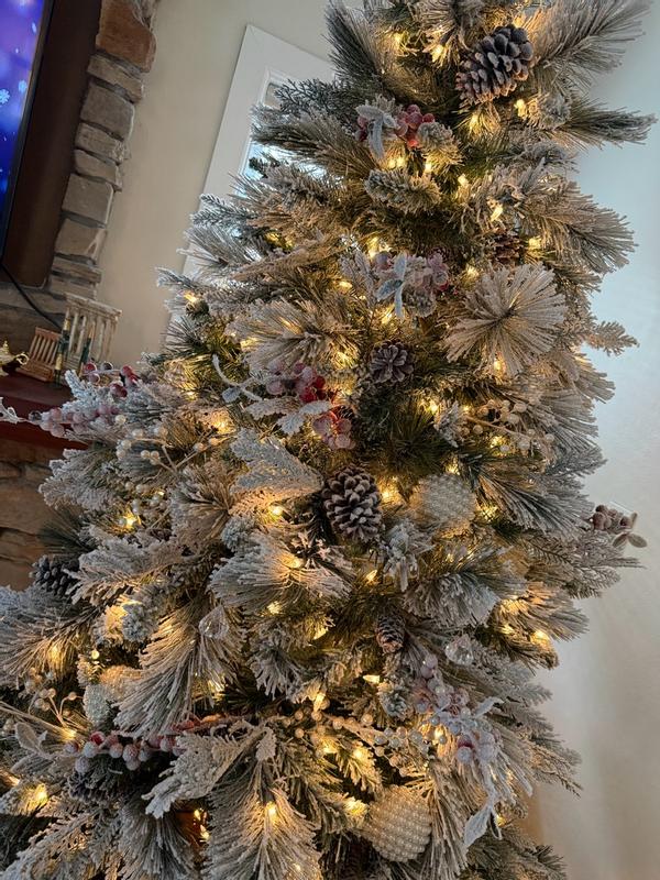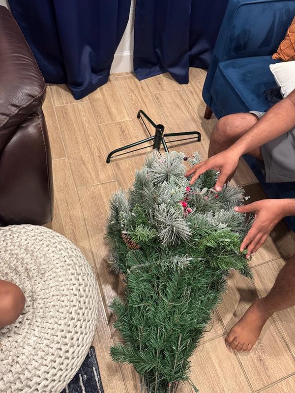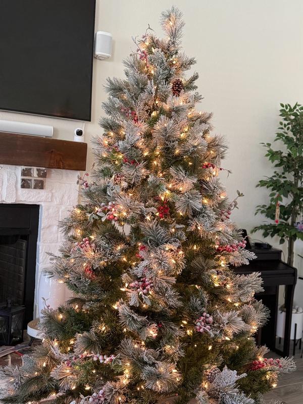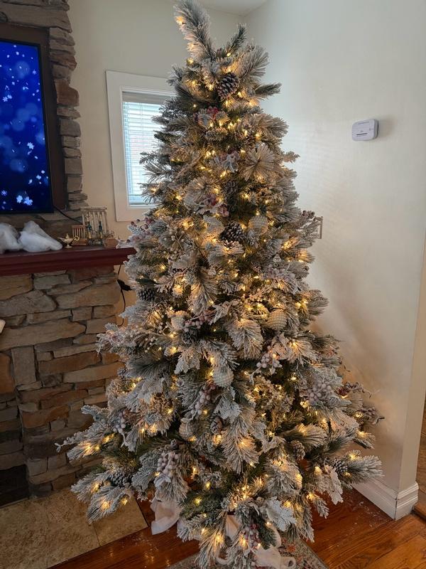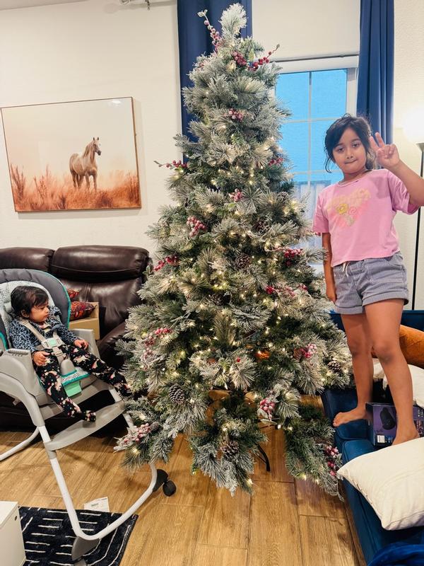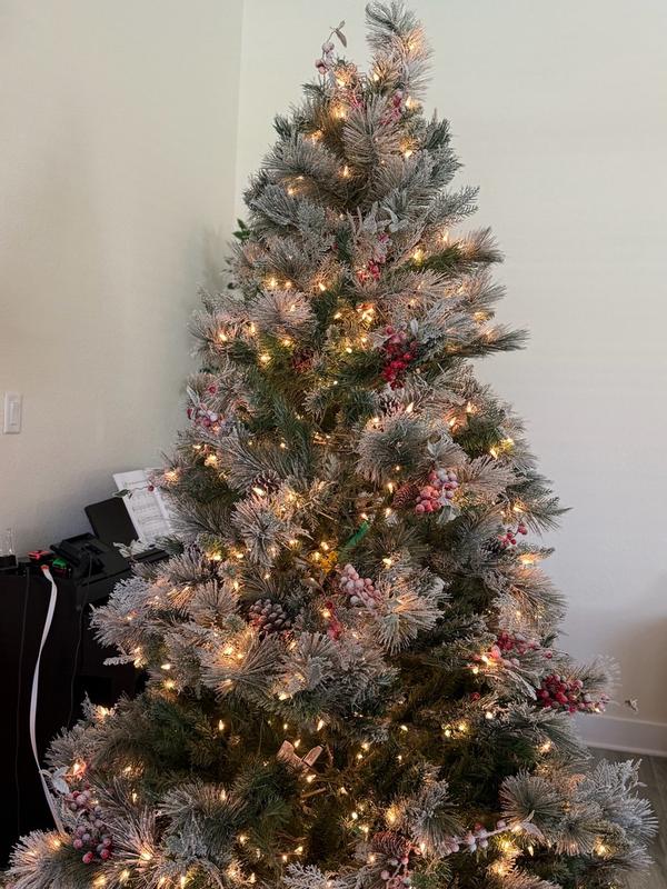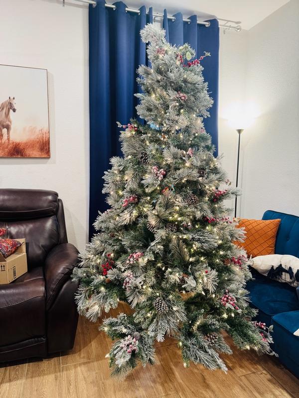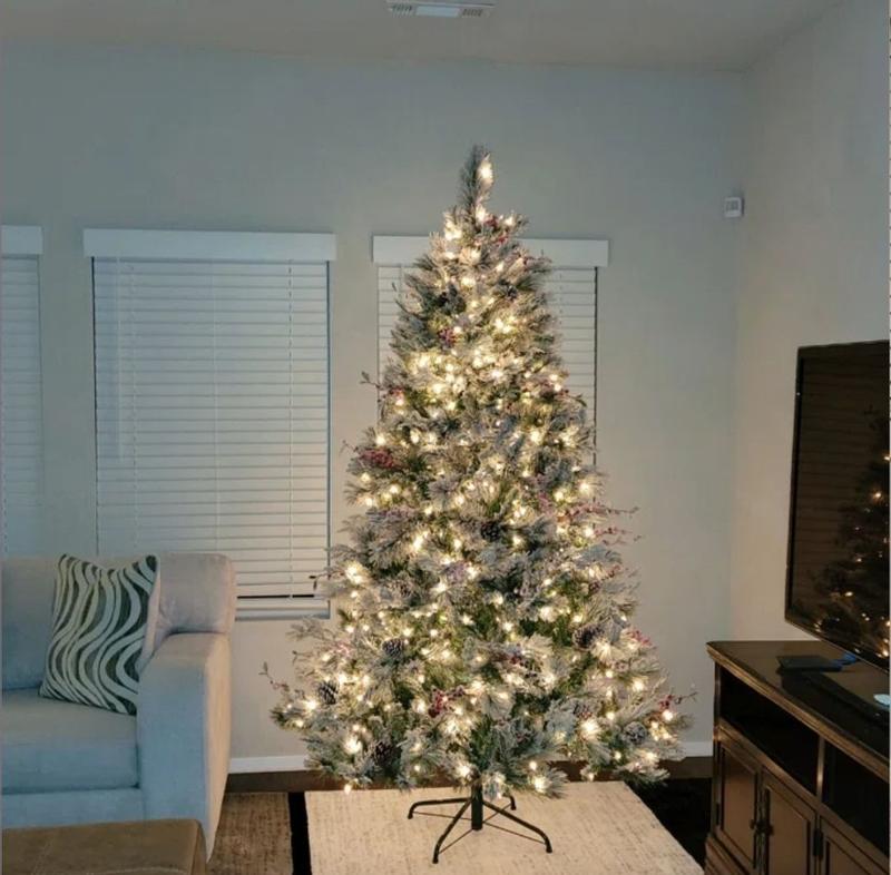 I received the National Tree Company 7.5 ft. Pre-Lit Snowy Bedford Pine Tree with Clear Lights, and it’s honestly one of the most beautiful artificial trees I’ve owned. The snow-flocked branches, pinecones, and red berry accents give it that perfect “winter wonderland” look — full, realistic, and elegant without needing a ton of extra decorations. Setup was simple thanks to the hinged branches, though it still took some time to “fluff” the branches for that full shape. Once it’s up, it really makes a statement — the 7.5-foot height and 5-foot diameter fill the room beautifully. The 700 pre-lit clear lights are evenly spaced and give off a warm, classic glow. I also appreciate that if one bulb goes out, the rest stay lit. The materials feel sturdy and high quality. The metal stand is solid, and the tree itself feels built to last. It’s also nice knowing it’s fire-resistant and hypoallergenic. A few small downsides — it’s heavy to move, the flocking does shed quite a bit during setup, and because it uses incandescent bulbs instead of LEDs, it’s not the most energy-efficient option. The price is on the higher side too, but for how realistic and full it looks, I think it’s worth it if you plan to use it for years. Overall, this tree is stunning — festive, classic, and premium quality. If you have the space and budget, I’d definitely recommend it.