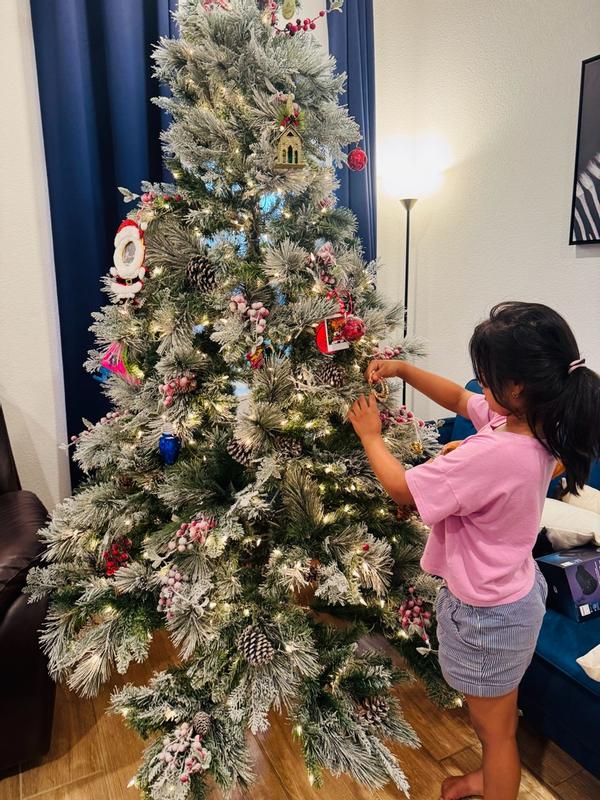 We just set up this tree and haven’t even added ornaments yet, but it already looks stunning. The branches are full and fluffy, and the snowy flocking gives it such a realistic, wintery look. The pre-lit lights are bright and evenly spaced, making it glow beautifully at night. It was easy to assemble, and the metal stand feels sturdy and stable. Even undecorated, it adds such a cozy, festive touch to our home, can’t wait to see how it looks once we finish decorating!
