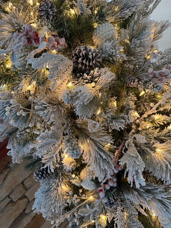 This tree is absolutely immaculate and breathtaking. The attention to detail especially the perfectly placed pinecones , cranberries, and the subtle perlite accents makes it beautiful enough to stand on its own without any added decorations. The perlite adds the perfect touch of “fresh snow,” enhancing that magical, snowy forest effect. It instantly transports me to a winter wonderland, as if I’m standing among real snow covered pine trees. The fullness of the branches and the high quality materials make it look incredibly realistic, and the size couldn’t be more perfect. Another huge bonus is the setup this tree comes in three sections, making assembly incredibly quick and easy. I truly loved everything about this tree. It exceeded my expectations in every way and has become a stunning seasonal centerpiece.