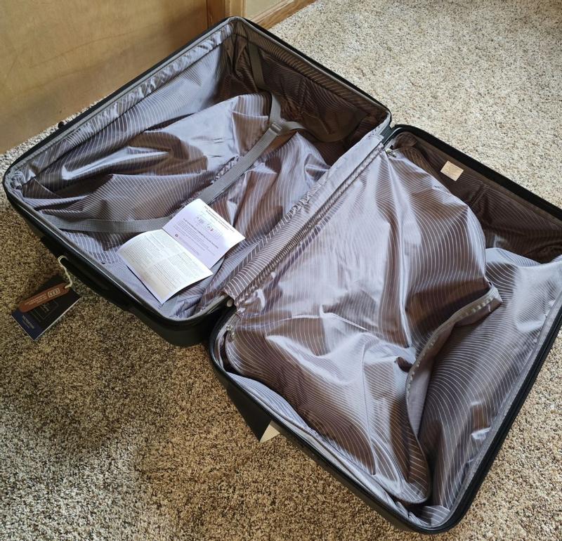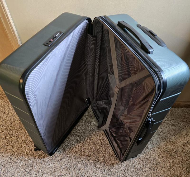 Unpacking this luggage was a pleasant surprise with the color alone, beautiful deep green. The luggage features a built-in combination lock and expanding zipper for those travel-heavy trips! There’s a zipper liner inside to divide one half of the luggage and a bungee clasp on the other. Overall, looking forward to seeing how this lasts over time